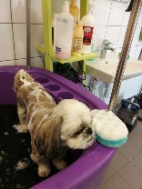 I vår hundtrimsalong erbjuder vi nya SPA procedurer som rengöring, närande masker och kroppsinpackningar med lera för hundar. Procedurerna väljs enligt pälstyp och individuella behov hos varje hund. SPA- |